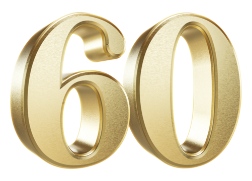 Shiny golden number "60" floats against a black background