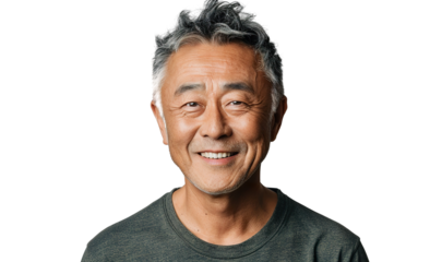 Smiling elderly man. Cutout. Transparent image material. Nice middle-aged man. Male. Sixty years old.