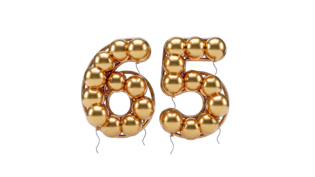 Golden 65th Anniversary Number isolated on a transparent background