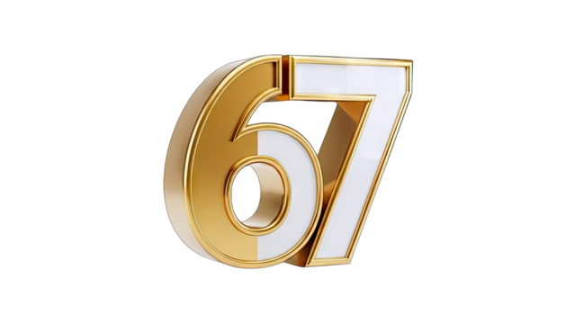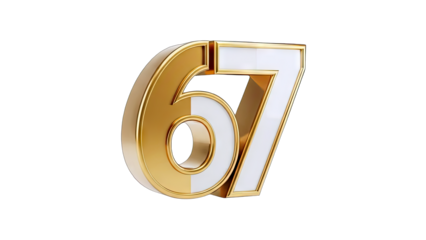 Golden Numbers 67 on White Background