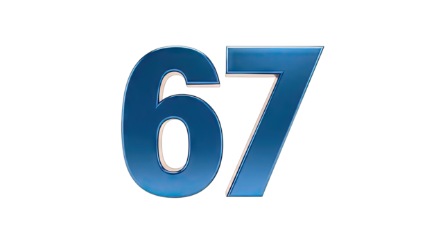 Blue Metallic Numbers 67 Isolated on White