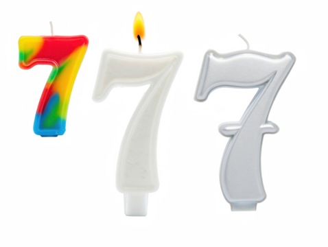 Birthday Candle Number 7 Isolated on transparent png Background, Bright and Clean Product Photography