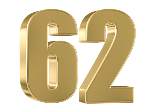Gold 3D Number 62