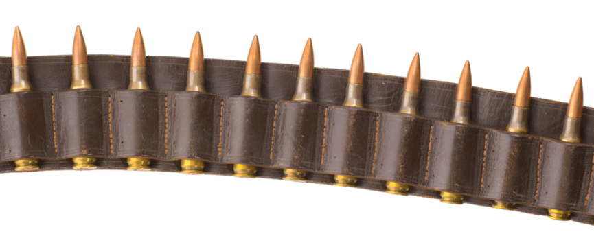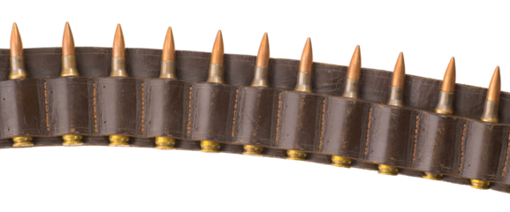 Leather bandolier with 7.62 ammunition isolated on white.