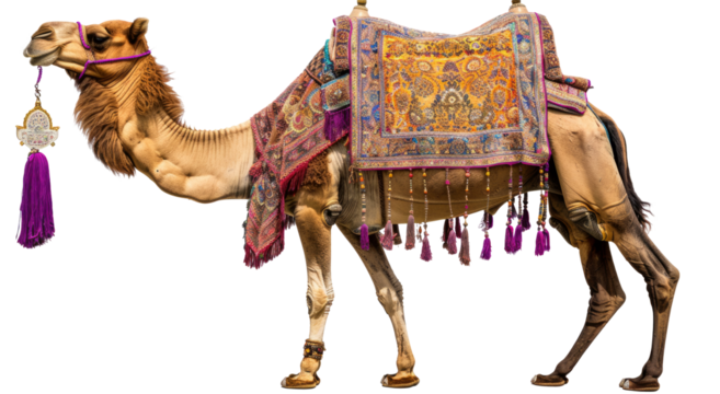 Camel animal with a hump isolated on transparent background. Desert nature travel and transportation, Arabic wildlife livestock, UAE, middle east