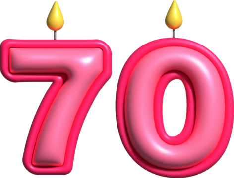 Illustration of red 70 candle numbers celebrating birthday