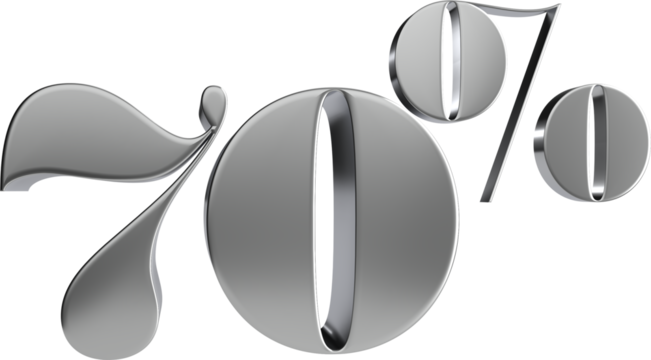 Golden metallic Number 70 Seventy, White background 3d illustration