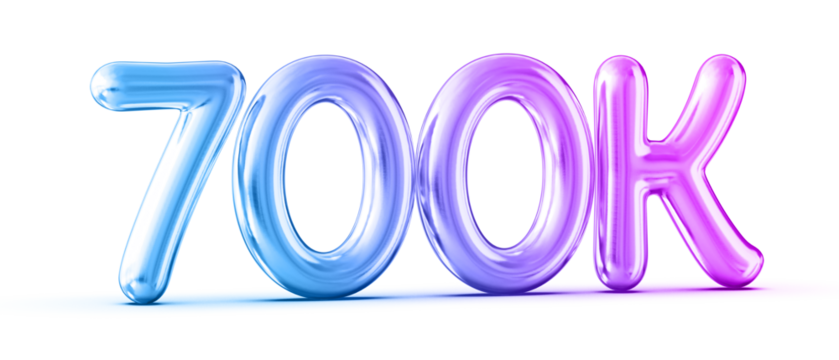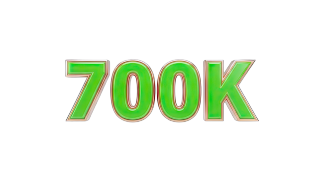 3D render of Golden seven hundred thousand or 700k number balloons isolated on white background. 700k followers celebration.