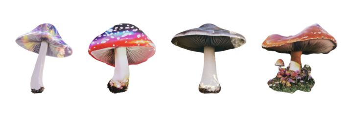Colorful Mushroom Cut-Out Set. Vintage Nature Collage Elements Collection Isolated On Transparent Background
