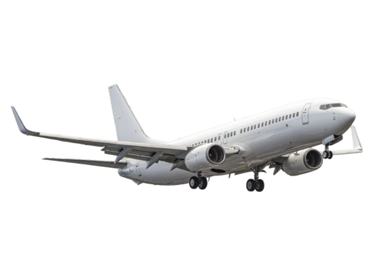 Real Commercial Airplane Boeing 737 on Transparent Background