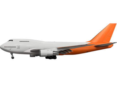 White and orange boeing 747 jumbo jet airplane isolated on transparent background