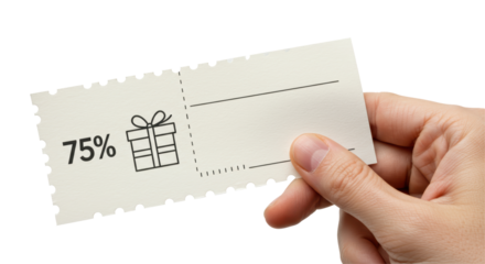 Isolated Hand Holding 75 Percent Discount Coupon Ticket with Gift Icon