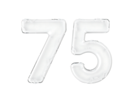 Artistic glass number 75 sculpture digital isolated on transparent background