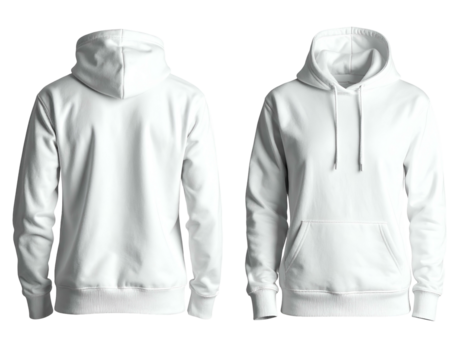 Clean white hooded sweatshirt, front and back views (1)