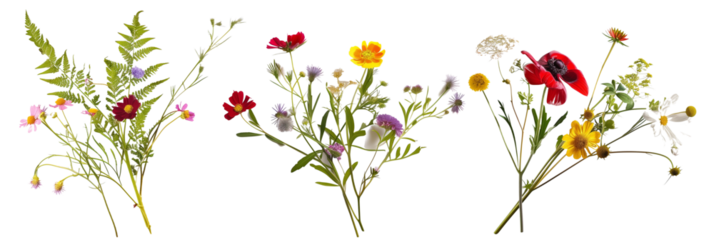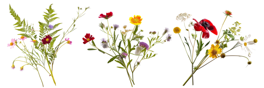 collection Set of 3 different mixed cactus and succulents types of small mini plant in modern ceramic nordic vase pot as furniture cutouts isolated on transparent background