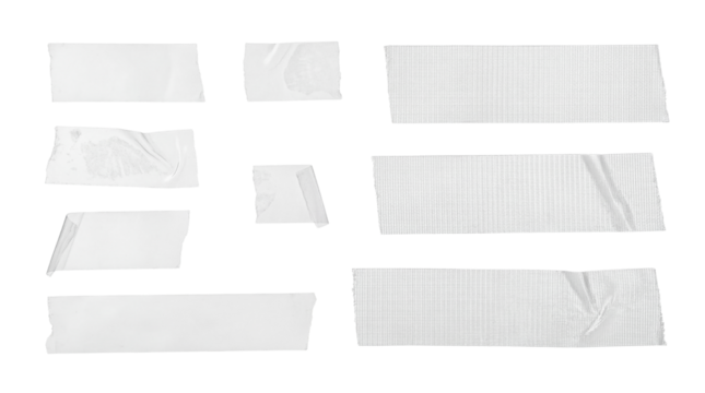 Set of 9 White Adhesive Masking Tape Pieces Isolated on White