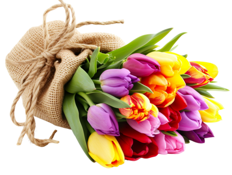 A row of colorful tulips cut-out. March 8. International Women's Day.