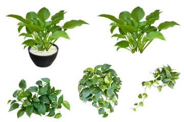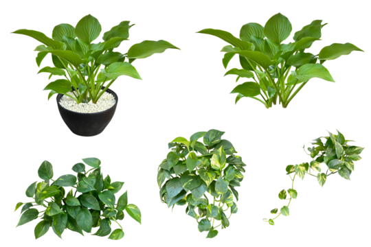 ギボウシとポトスの緑美しい葉の切抜き(背景透過)