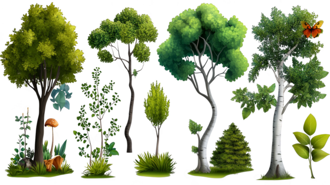 PNG. 4 wood boxes in different sizes, front view, white background, wooden slats, product photography