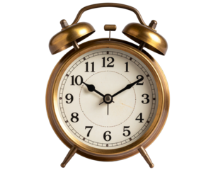 Vintage Alarm Clock with Time 7:00 AM, Front View, Transparent Background