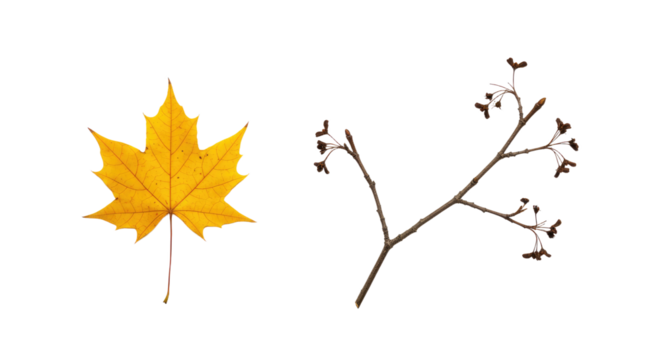 Autumn Leaf and Branch on White 1.