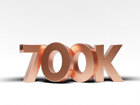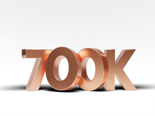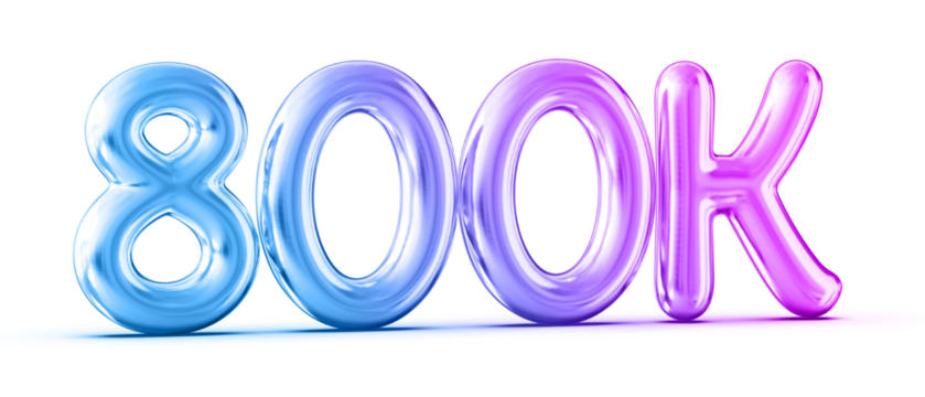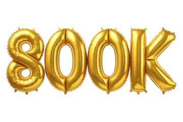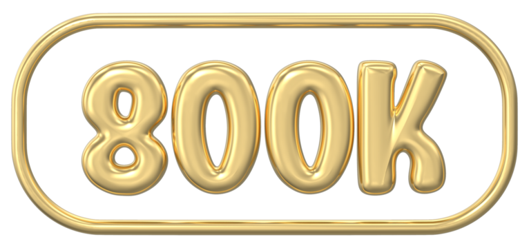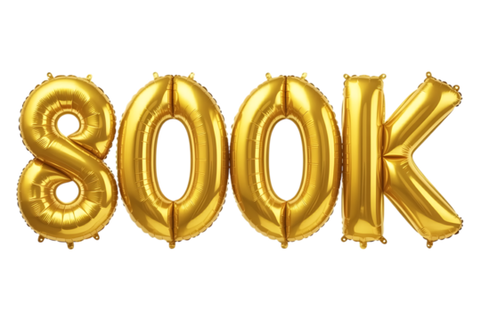 3D render of Golden eight hundred thousand or 800k number balloons isolated on white background. 800k followers celebration.