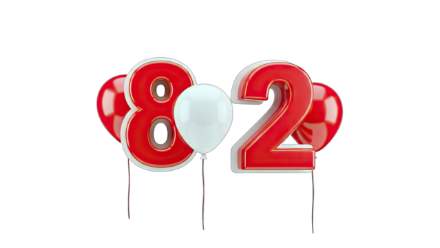 Number 82 Balloons Celebration on White Background