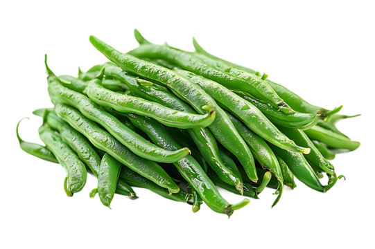 Pile of Fresh Green Beans, Bright Lighting, Sharp Focus, Isolated Black Background 87 Chars