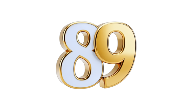 Golden Number 89 on White Background