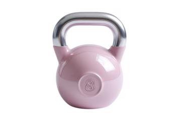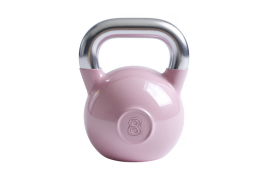 Pink eight kilogram kettlebell isolated on transparent background perfect for fitness workouts