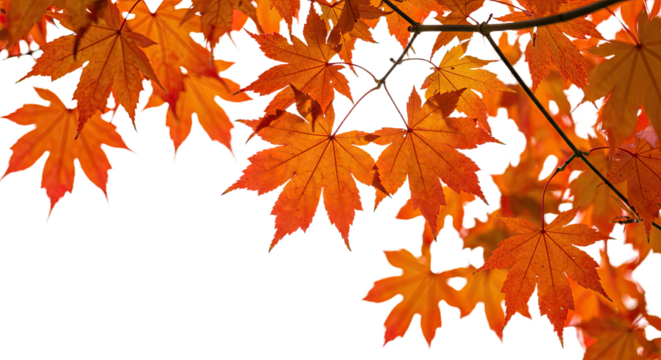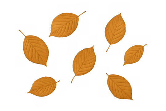 Eight orange autumn leaves falling down on a transparent background, perfect for seasonal designs