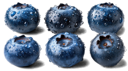A group of eight cranberries scattered on a black background in a studio shot for food photography