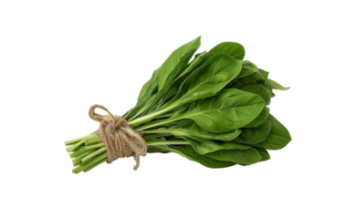 a bunch of fresh spinach tied with twine, isolated on a white background. high-resolution photography, high-quality, photorealistic stock photos for designers. conceptual scenes, cut-out and pasted e