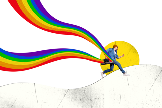 Composite collage picture image of guy run boombox lgbt rainbow isolated on creative background