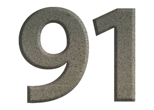 The shape of the number 91 is made of cement isolated on transparent background. Suitable for birthday, anniversary and Memorial Day templates