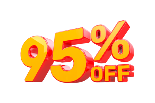 95 Percent Discount Icon, Gold 3D Text Isolated on Transparent Background