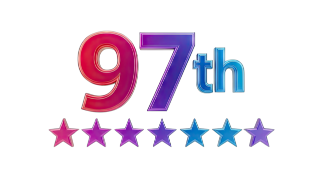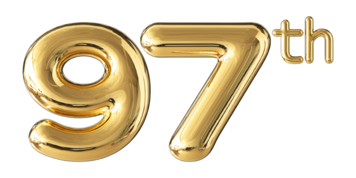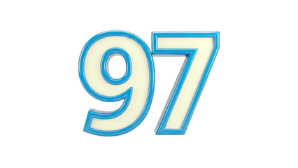 3D Number 97 with Blue and Yellow Outline on transparent background