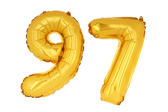 Gold Balloons Ninety-Seven Number 97 for Birthday Party Celebration