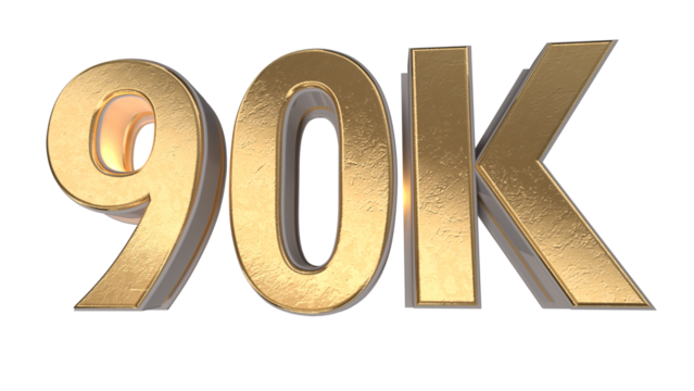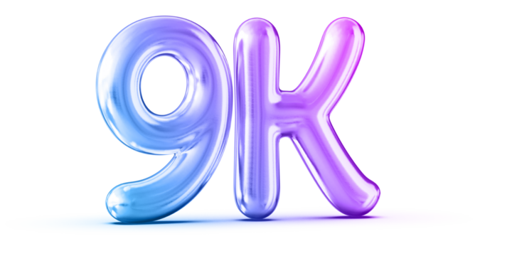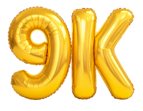 3D render of Golden 9K sign isolated on white background, 9k followers celebration. nine thousand