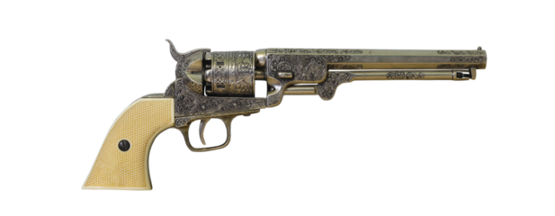 Double-barrel 1911-style pistol, twin-barrel handgun on a transparent background