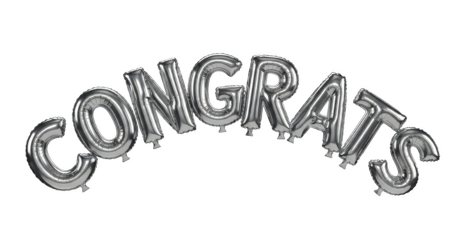 Silver foil balloons spelling out the word C O N G R A T S congrats congratulations