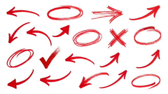 Red brushstroke arrows on transparent background illustration