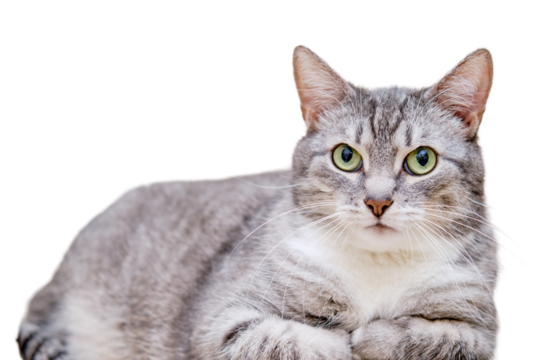 Tabby cat with collar pet animal feline domestic adorable on transparent background