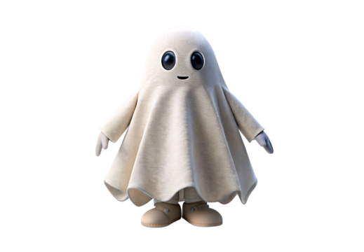 Little smiling ghost illustration floating with friendly charm isolated on transparent background