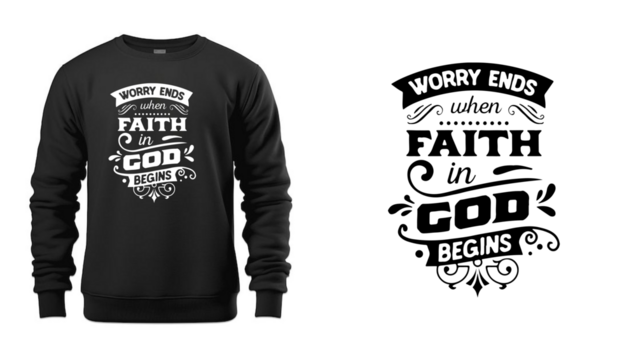 Worry Ends When Faith in God Begins Inspirational Christian T Shirt Typography