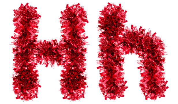 letter H made from New Year's tinsel, isolated Christmas tinsel, tinsel garland