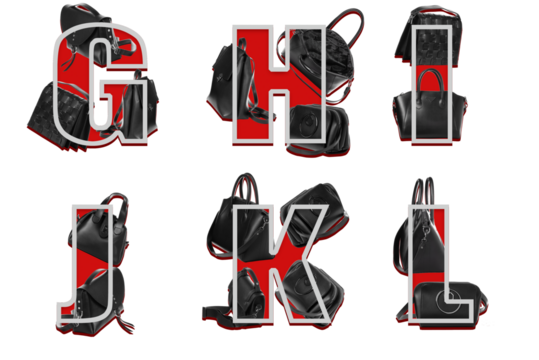 Designer decoration of letters g h i j k l with bags.