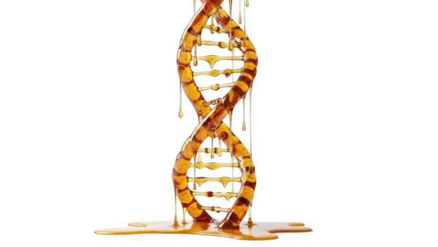 Honey D N A helix dripping against png isolated transparent background black background liquid