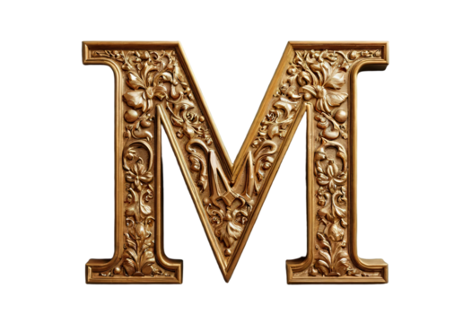 Serif letter m on torn paper transparent background