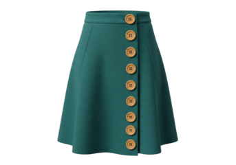 Isolated Elegant Teal A-Line Skirt with Wooden Buttons